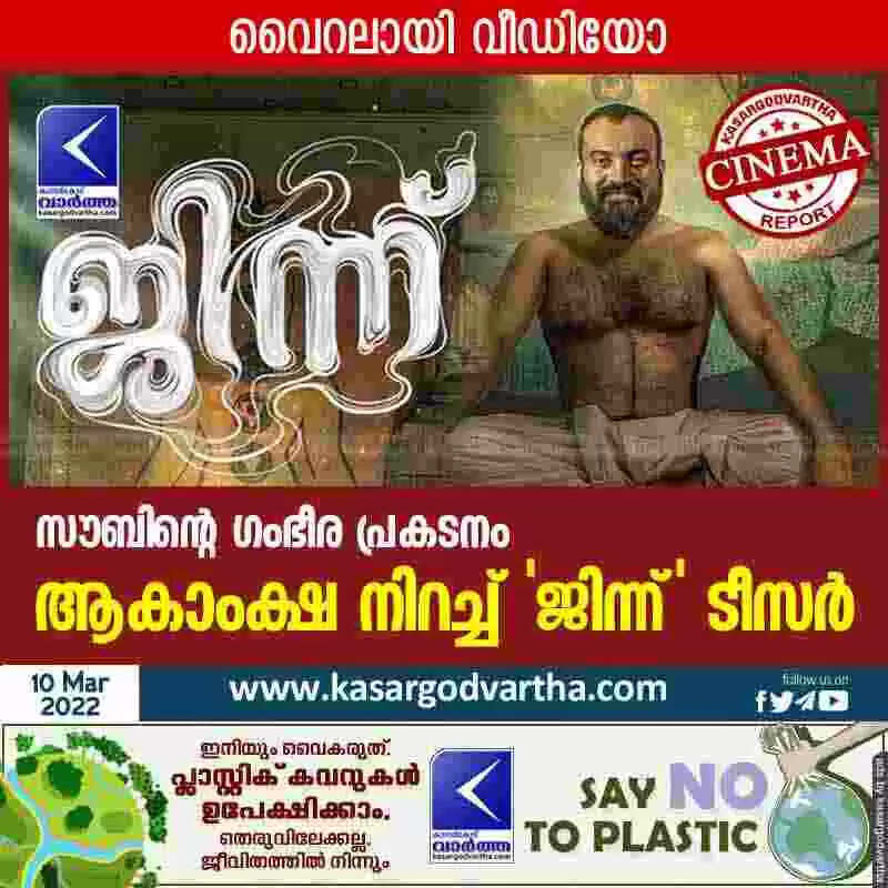 Keywords: Kochi, News, Kerala, Top-Headlines, Cinema, Entertainment, Actor, Teaser of the movie 'Jinn' starring Saubin released.