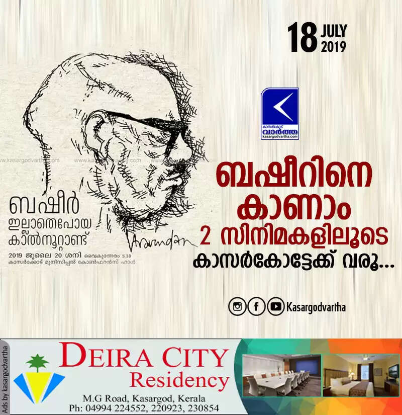 Keywords:  Kasaragod, Kerala, news, Top-Headlines, Cinema, Vaikom Muhammad Basheer's cinema show in Kasaragod on July 20th