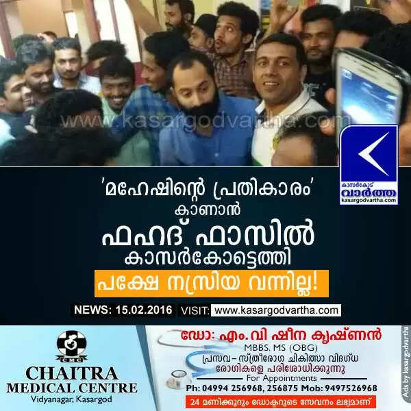 'മഹേഷിന്റെ പ്രതികാരം' കാണാന് ഫഹദ് ഫാസില് കാസര്കോട്ടെത്തി; പക്ഷേ നസ്രിയ വന്നില്ല!