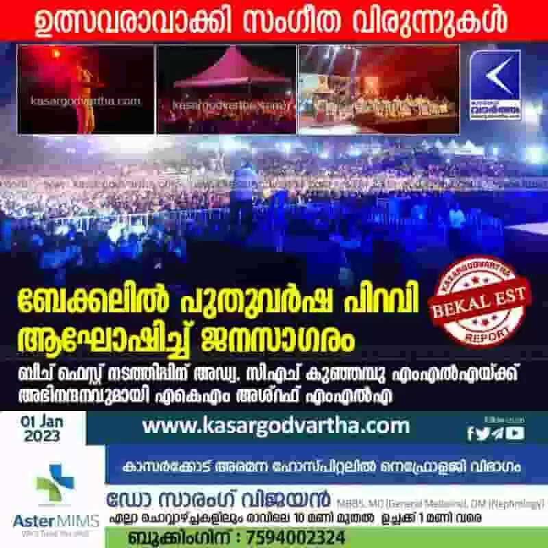 Keywords:  Latest-News, Kerala, Kasaragod, Top-Headlines, Bekal-Beach, Bekal, Celebration, Festival,New-Year-2023, New Year, Programme, Singer, Entertainment, People celebrated New Year in Bekal.