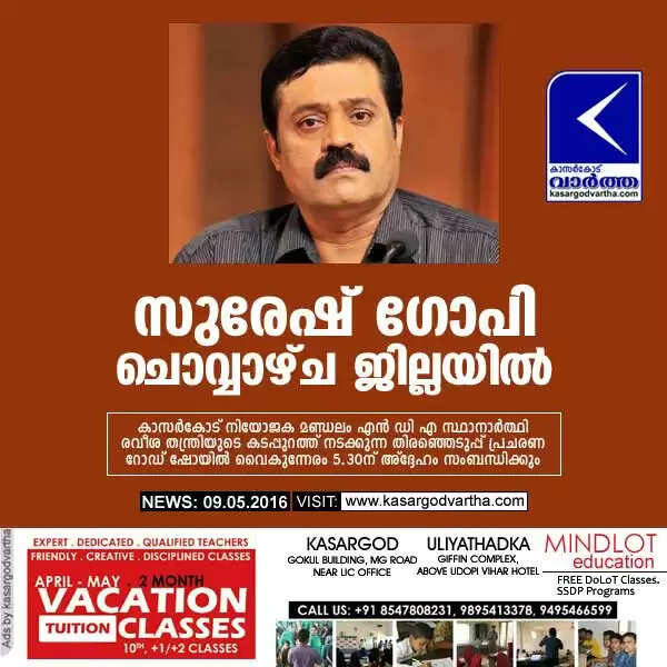 Keywords : Entertainment, Election 2016, BJP, Kasaragod, Suresh Gopi.