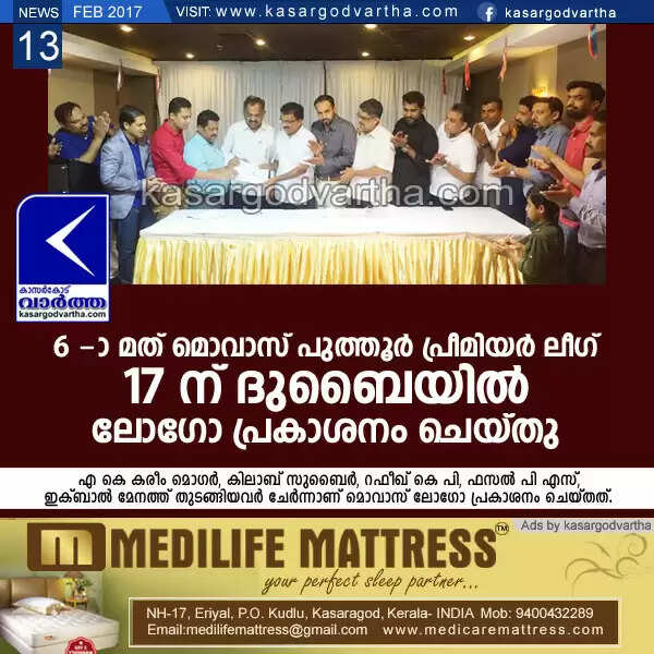 Keywords: Gulf, Dubai, Logo, Release, Club, Mogral puthur, Sports, Football tournament, Movas Puthoor Premiere League, Mogral Puthur Welfare Association, Bilva Indian School, 6th Movas Puthur Premiere League on 17th at Dubai; Logo Released