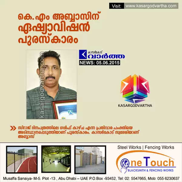 Keywords : Dubai, Gulf, Award, Media Worker, Kasaragod, KM Abbas, Asia Vision.