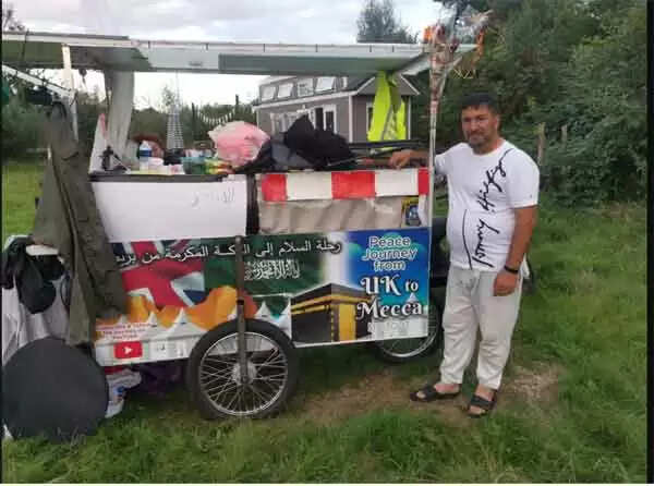 ഇറാഖി-കുര്‍ദിഷ് വംശജനായ ആദം മുഹമ്മദ് 2021 ഓഗസ്റ്റ് 1നാണ് ബ്രിടണിലെ വോള്‍വര്‍ഹാംപ്ടണിലെ വീട്ടില്‍ നിന്ന് പുണ്യയാത്ര ആരംഭിച്ചത്. സ്വന്തമായി നിര്‍മിച്ച ഉന്തുവണ്ടിക്ക് സമാനമായ വാഹനത്തിലായിരുന്നു ആദം വസ്ത്രമടക്കമുള്ള തന്റെ സാധനങ്ങള്‍ സൂക്ഷിച്ചത്. ഭക്ഷണമുണ്ടാക്കാനും ഉറങ്ങാനും ഈ വാഹനമാണ് ആദം ഉപയോഗിച്ചിരുന്നത്. കാലാവസ്ഥയും ചെറിയ യാത്രാ ബുദ്ധിമുട്ടും ഒഴിച്ചാല്‍ മക്കയിലേക്കുള്ള യാത്ര വളരെ സുഗമമായിരുന്നെന്ന് ആദം മുഹമ്മദ് അറബ് ന്യൂസിനോട് പറഞ്ഞു.