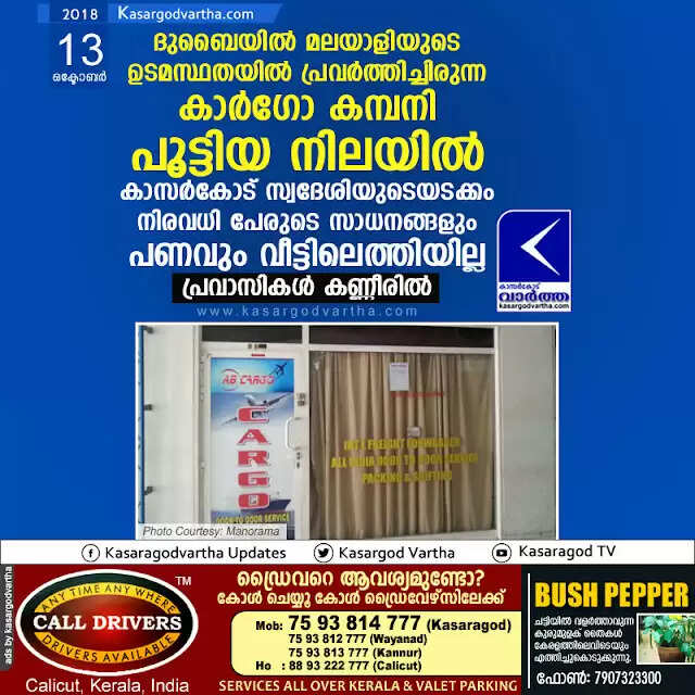 Keywords: Kasaragod, Kerala, news, Top-Headlines, Dubai, Gulf, Cargo Company owner escaped; expatriates in trouble