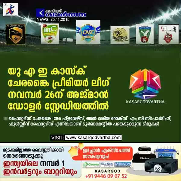 കാസ്ക് ചേരങ്കൈ ക്രിക്കറ്റ് പ്രീമിയര് ലീഗ് 26ന് അജ്മാന് ഡോളര് സ്റ്റേഡിയത്തില്