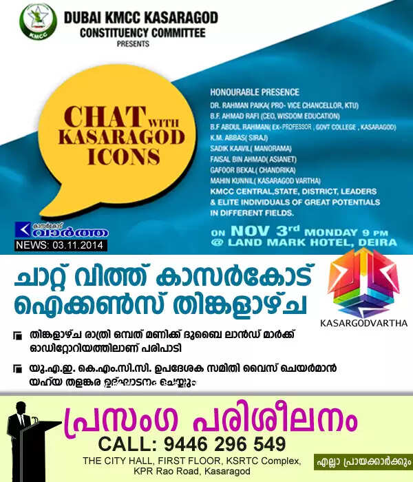 Keywords : Dubai Kerala Muslim Cultural Centre, Kasaragod Constitution committee, Chat with Kasaragod Icons, Dubai, Gulf, KMCC.
