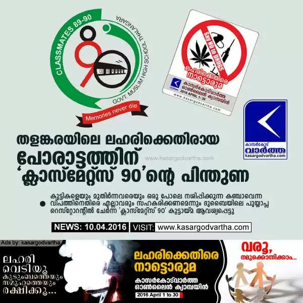 തളങ്കരയിലെ ലഹരിക്കെതിരായ പോരാട്ടത്തിന് 'ക്ലാസ്മേറ്റ്സ് 90' ന്റെ പിന്തുണ