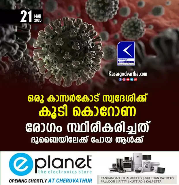 ഒരു കാസര്കോട് സ്വദേശിക്ക് കൂടി കൊറോണ; രോഗം സ്ഥിരീകരിച്ചത് ദുബൈയിലേക്ക് പോയ ആള്ക്ക്