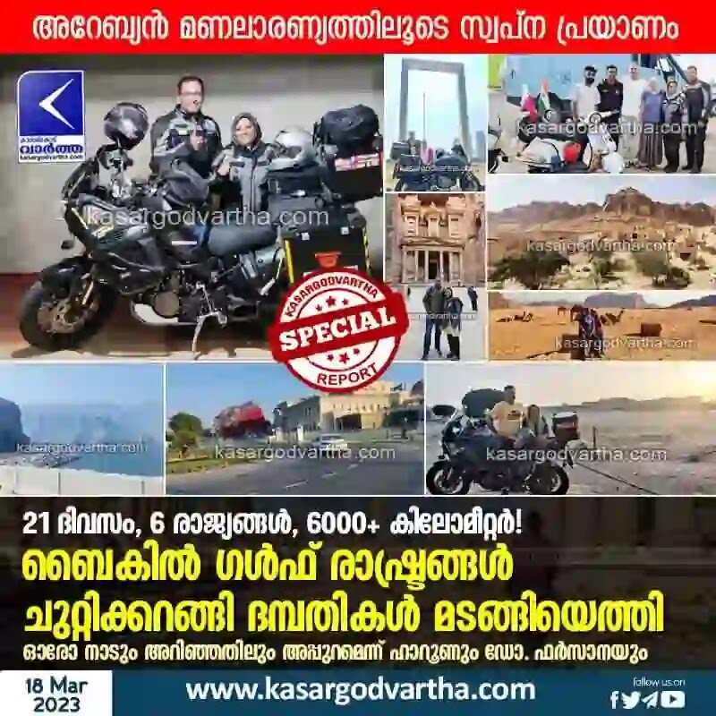 Travel | 21 ദിവസം, 6 രാജ്യങ്ങള്‍, 6000 ലധികം കിലോമീറ്റര്‍! ബൈകില്‍ ഗള്‍ഫ് രാഷ്ട്രങ്ങള്‍ ചുറ്റിക്കറങ്ങി ദമ്പതികള്‍ മടങ്ങിയെത്തി; ഓരോ നാടും അറിഞ്ഞതിലും അപ്പുറമെന്ന് ഹാറൂണും ഡോ. ഫര്‍സാനയും
