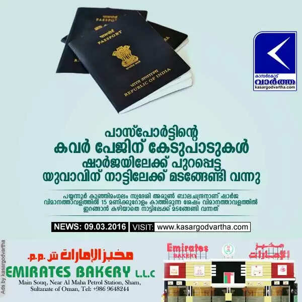 Keywords : Payyannur, Sharjah, Gulf, Youth, Airport, Cover Page, Passport, Arun,Damage in passport cover page; Passenger stopped in Air port.