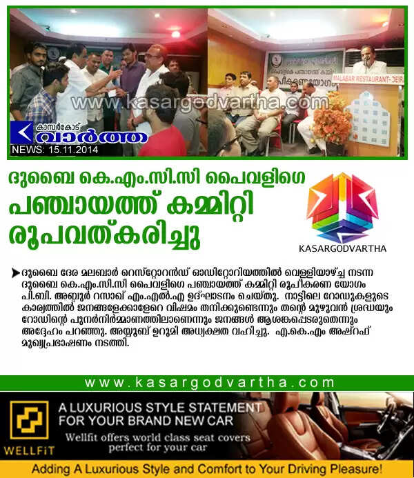 ദുബൈ: (www.kasargodvartha.com 15.11.2014) ദുബൈ ദേര മലബാര്‍ റെസ്‌റ്റോറന്‍ഡ് ഓഡിറ്റോറിയത്തില്‍ വെള്ളിയാഴ്ച്ച നടന്ന ദുബൈ കെ.എം.സി.സി പൈവളിഗെ പഞ്ചായത്ത് കമ്മിറ്റി രൂപീകരണ യോഗം പി.ബി. അബ്ദുര്‍ റസാഖ് എം.എല്‍.എ ഉദ്ഘാടനം ചെയ്തു.