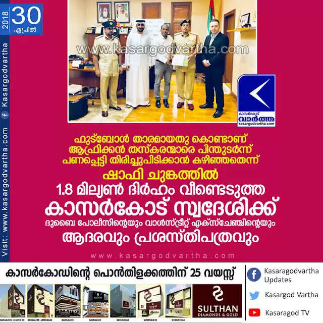 Keywords: Top-Headlines, Dubai, Gulf, News, Police, Felicitation,Dubai police's felicitation for Kasaragod native.