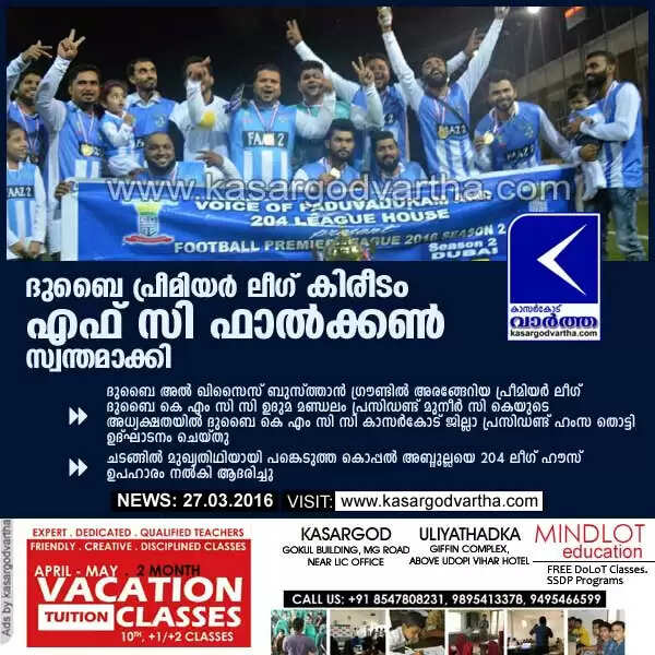 ദുബൈ പ്രീമിയര് ലീഗ് കിരീടം എഫ് സി ഫാല്ക്കണ് സ്വന്തമാക്കി