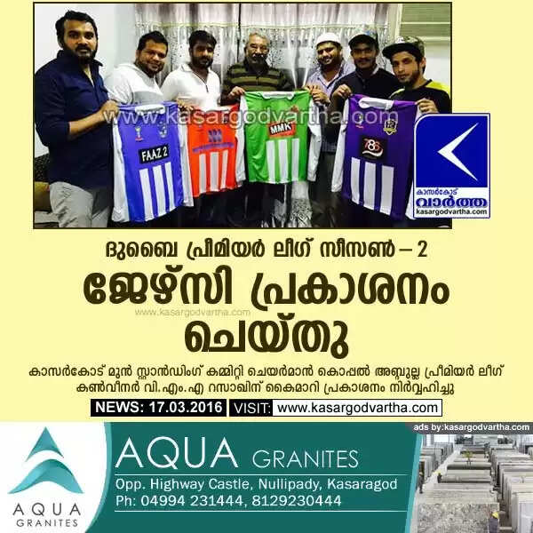 ദുബൈ പ്രീമിയര് ലീഗ് സീസണ്-2; ജേഴ്സി പ്രകാശനം ചെയ്തു
