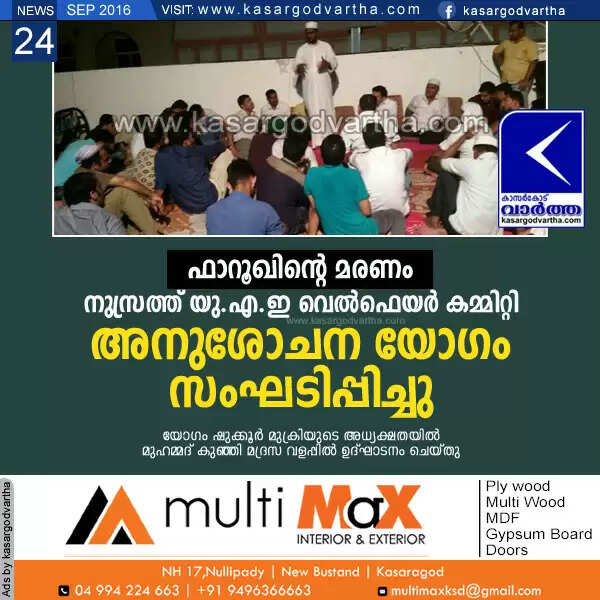 ഫാറൂഖിന്റെ മരണം: നുസ്രത്ത് യു.എ.ഇ വെല്ഫെയര് കമ്മിറ്റി അനുശോചന യോഗം സംഘടിപ്പിച്ചു