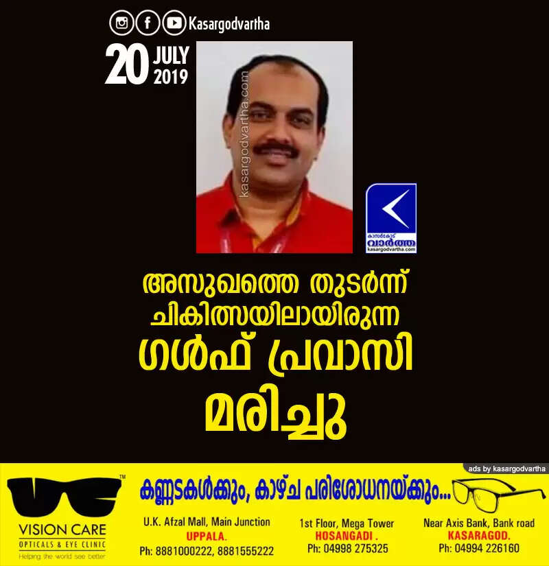 അസുഖത്തെ തുടര്‍ന്ന് ചികിത്സയിലായിരുന്ന ഗള്‍ഫ് പ്രവാസി മരിച്ചു