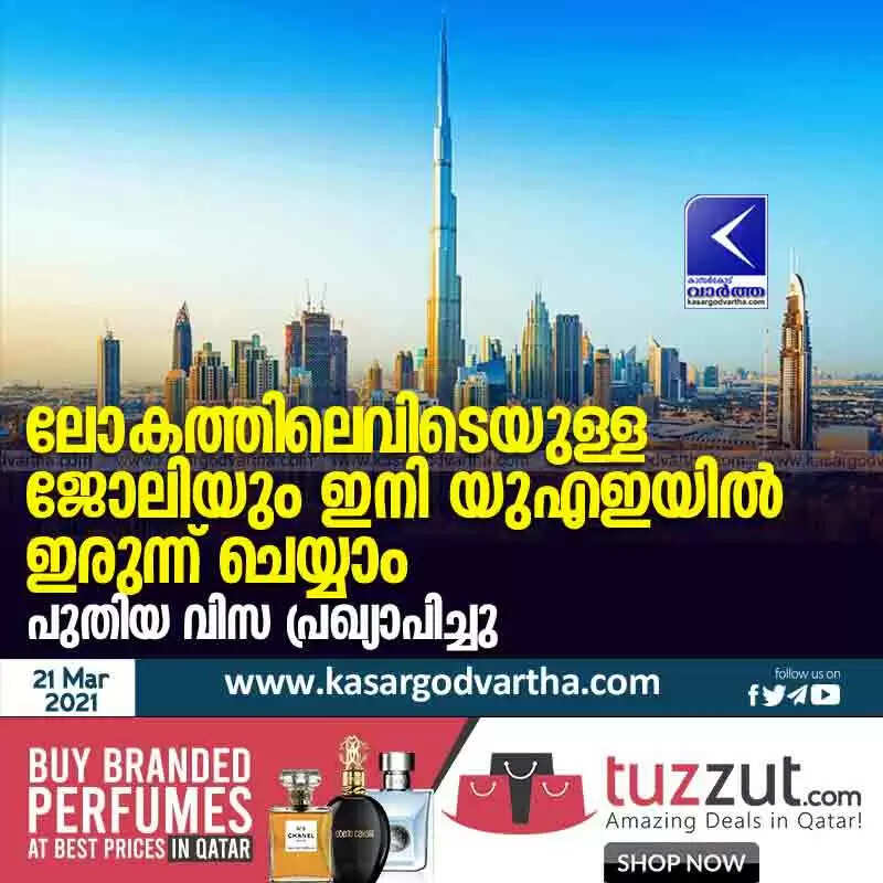 ദുബൈ: (www.kasargodvartha.com 21.03.2021) ലോകത്തെവിടെയുമുള്ള ജോലിയും യുഎഇലിരുന്ന് ചെയ്യാൻ പ്രത്യേക വിസ അനുവദിക്കുന്നു. ഏത് രാജ്യത്തുള്ള കമ്പനിയാണെങ്കിലും യുഎഇയിൽ താമസിച്ച് ജോലി ചെയ്യാൻ പുതിയ വിസയിലൂടെ സാധിക്കും. യുഎഇ വൈസ് പ്രസിഡന്റും പ്രധാനമന്ത്രിയും ദുബൈ ഭരണാധികാരിയുമായ ശെയ്ഖ് മുഹമ്മദ് ബിൻ റാശിദ് അൽ മക്തൂമിന്റെ അധ്യക്ഷതയിൽ ഞായറാഴ്ച ചേർന്ന മന്ത്രിസഭാ യോഗത്തിലാണ് തീരുമാനം കൈകൊണ്ടത്.