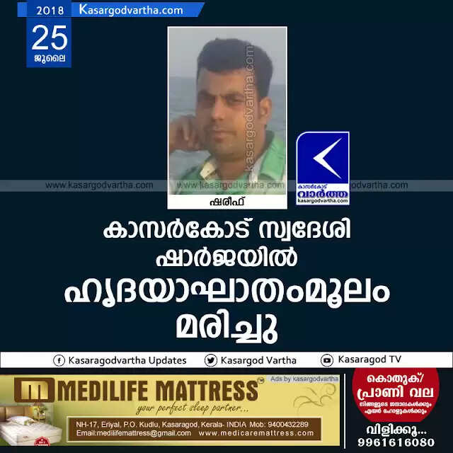 Keywords: Kasaragod, Kerala, news, Gulf, Death, Obituary, Sharjah, Kasaragod native died in Sharjah