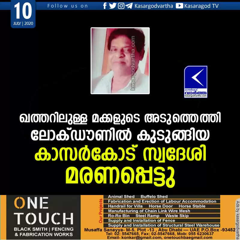 ഖത്തറിലുള്ള മക്കളുടെ അടുത്തെത്തി ലോക്ഡൗണില് കുടുങ്ങിയ കാസര്കോട് സ്വദേശി മരണപ്പെട്ടു
