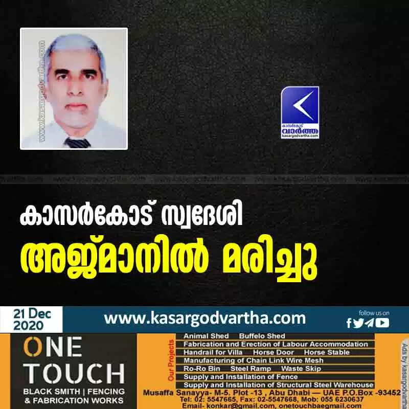 കാസർകോട് സ്വദേശി അജ്മാനിൽ മരിച്ചു