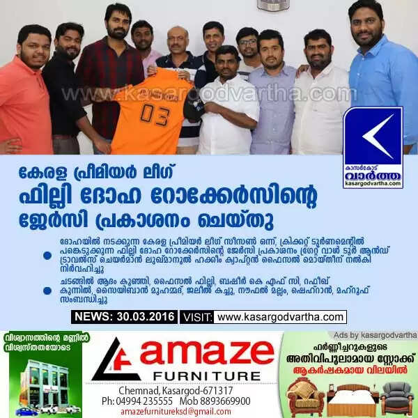 കേരള പ്രീമിയര് ലീഗ്: ഫില്ലി ദോഹ റോക്കേര്സിന്റെ ജേര്സി പ്രകാശനം ചെയ്തു