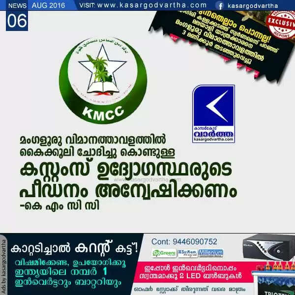 Keywords: Dubai, Gulf, KMCC, Airport, Mangalore, Mangalore Airport, Customs, Bribe, Kasaragod native, Leave, KMCC demands investigation of Mangaluru airport customs issue
