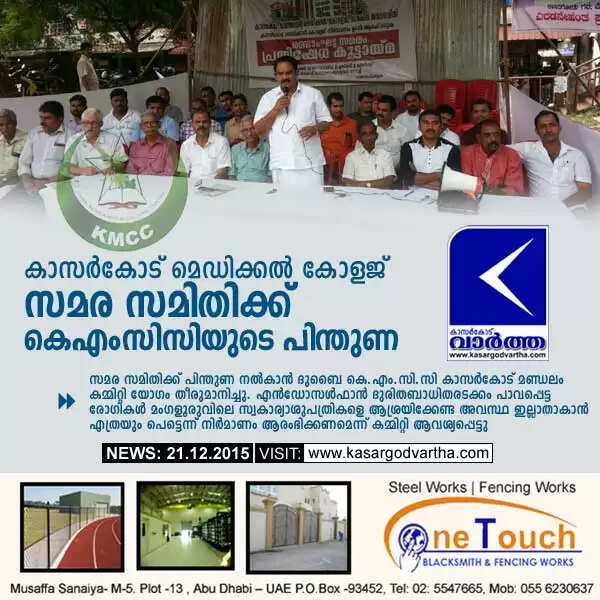 കാസര്കോട് മെഡിക്കല് കോളജ്; സമര സമിതിക്ക് കെഎംസിസിയുടെ പിന്തുണ