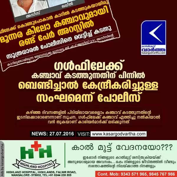 ഗള്ഫിലേക്ക് കഞ്ചാവ് കടത്തുന്നതിന് പിന്നില് ബെണ്ടിച്ചാല് കേന്ദ്രീകരിച്ചുള്ള സംഘമെന്ന് പോലീസ്