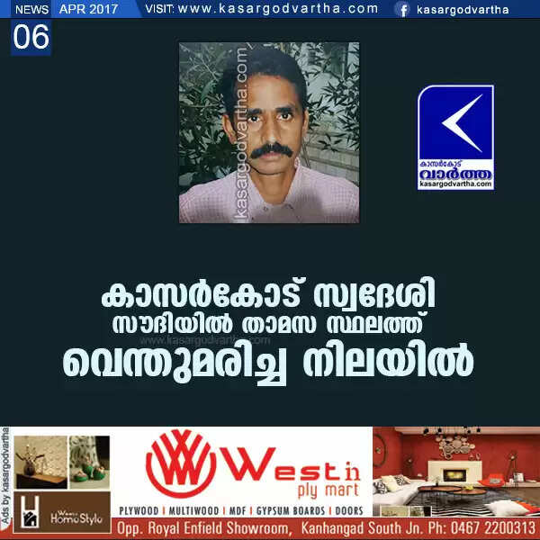 Keywords : Saudi Arabia, Gulf, Obituary, Kasaragod, Kanhangad, Rajapuram, Burnt, Top-Headlines, Malayalee found dead in Saudi Arabia, Aravindakshan.