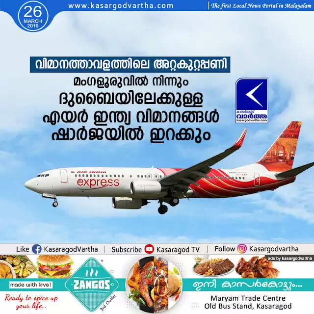 വിമാനത്താവളത്തിലെ അറ്റകുറ്റപ്പണി; മംഗളൂരുവില്‍ നിന്നും ദുബൈയിലേക്കുള്ള എയര്‍ ഇന്ത്യ വിമാനങ്ങള്‍ ഷാര്‍ജയില്‍ ഇറക്കും