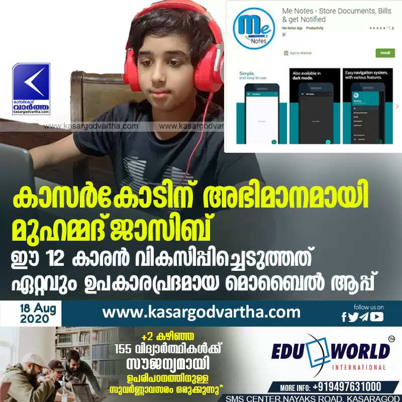 കാസർകോടിന് അഭിമാനമായി മുഹമ്മദ് ജാസിബ്; ഈ 12 കാരൻ വികസിപ്പിച്ചെടുത്തത് ഏറ്റവും ഉപകാരപ്രദമായ മൊബൈൽ ആപ്പ്