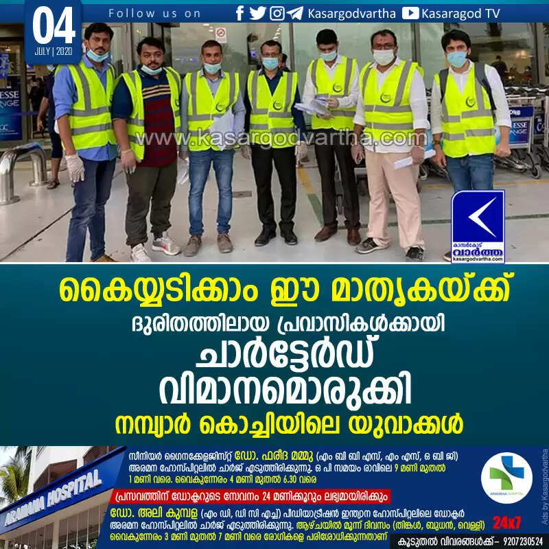Keywords: Chartered Flight, Abudhabi, news, Gulf, Dubai, Kochi, Youth, Nambiar Kochi, Nambiar Kochi youths chartered flight for expats