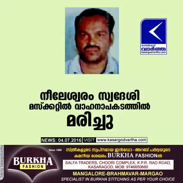 നീലേശ്വരം സ്വദേശി മസ്ക്കറ്റില് വാഹനാപകടത്തില് മരിച്ചു