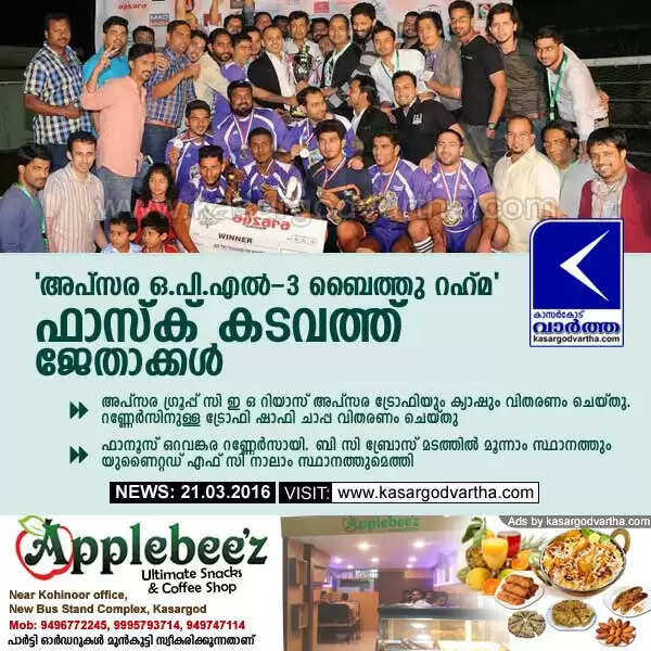 'അപ്സര ഒ.പി.എല്3 ബൈത്തു റഹ് മ' ഫാസ്ക് കടവത്ത് ജേതാക്കള്