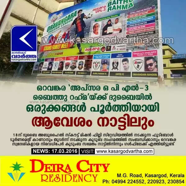 ഒറവങ്കര 'അപ്സര ഒ പി എല്-3 ബൈത്തു റഹ് മ'യ്ക്ക് ദുബൈയില് ഒരുക്കങ്ങള് പൂര്ത്തിയായി; ആവേശം നാട്ടിലും