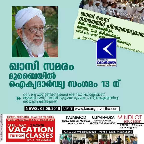 ഖാസി സമരം: ദുബൈയില് ഐക്യദാര്ഢ്യ സംഗമം 13 ന്
