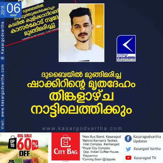 Keywords: news, Gulf, Dubai, Deadbody, Death, Kasaragod, Shakir's dead body to be brought Home land on Monday