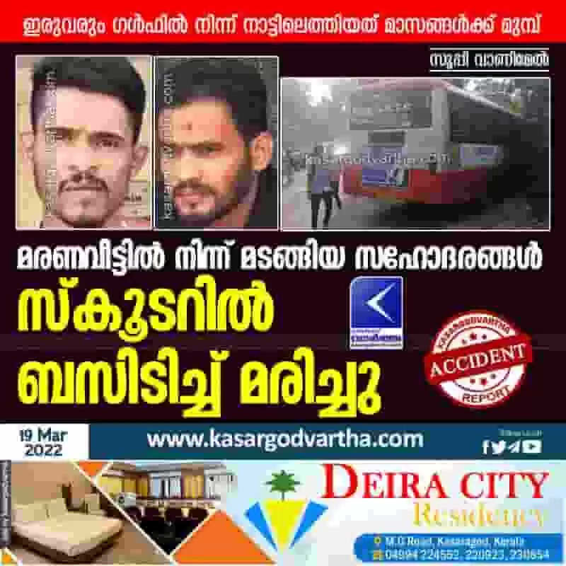 Keywords: News, Karnataka, Mangalore, Top-Headlines, Accident, Accidental Death, Brothers, Scooter, Bus, KSRTC-bus, Died, Gulf, Two brothers died in road accident.