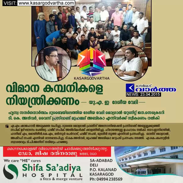 വിമാന കമ്പനികളെ നിയന്ത്രിക്കണം യു.എ. ഇ ദേശീയ വേദി