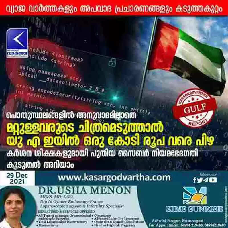 പൊതുസ്ഥലങ്ങളിൽ അനുവാദമില്ലാതെ മറ്റുള്ളവരുടെ ചിത്രമെടുത്താൽ യു എ ഇയിൽ ഒരു കോടി രൂപ വരെ പിഴ; കർശന ശിക്ഷകളുമായി പുതിയ സൈബർ നിയമഭേദഗതി; കൂടുതൽ അറിയാം