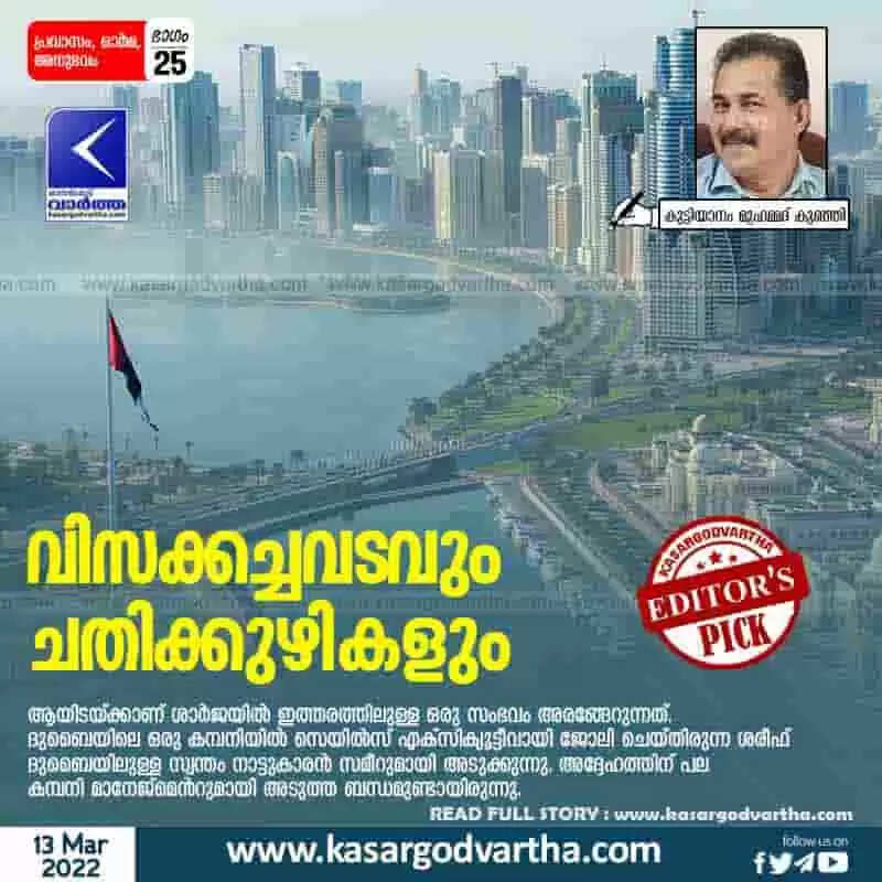 Keywords: Sharjah, Gulf, Kerala, Visa-scam, Cheating, Youth, Job, Work, Article, Novel, Kuttiyanam Mohammedkunhi, Visa fraud and scams.