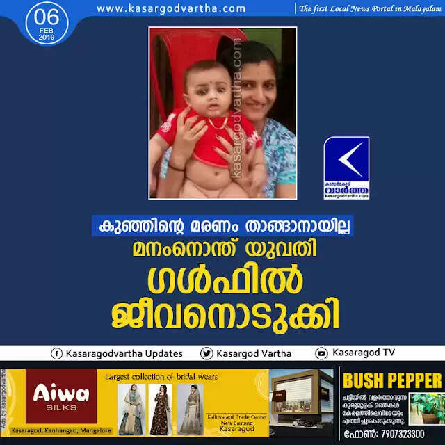 കുഞ്ഞിന്റെ മരണം താങ്ങാനായില്ല; മനംനൊന്ത് യുവതി ഗള്ഫില് ജീവനൊടുക്കി