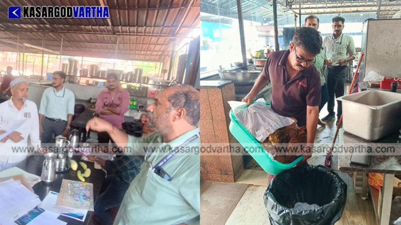 സ്ഥാപന ഉടമകൾ കൃത്യമായ ഇടവേളകളിൽ ശുചീകരണ പ്രവർത്തനങ്ങൾ നടത്തണമെന്നും ഭക്ഷണത്തിന്റെ ഗുണനിലവാരത്തിൽ വിട്ടുവീഴ്ച ചെയ്യരുതെന്നും അദ്ദേഹം നിർദ്ദേശിച്ചു. ജൂനിയർ ഹെൽത്ത് ഇൻസ്പെക്ടർമാരായ ആദേഷ്, ആദിത്യൻ, രാജിമോൾ, പിആർഒ സന്തോഷ് കുമ്പള എന്നിവരടങ്ങിയ സംഘമാണ് പരിശോധന നടത്തിയത്.