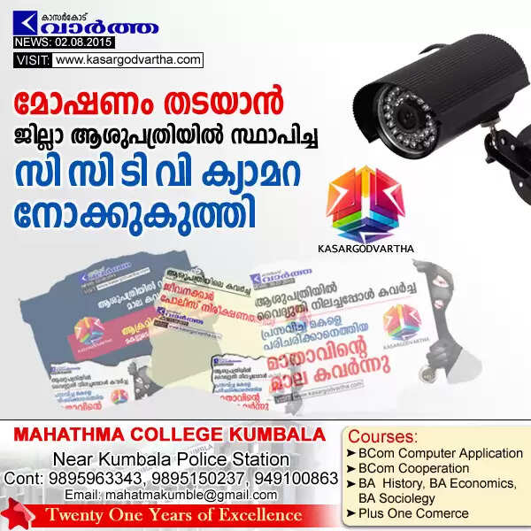 Keywords: Kasaragod, Kerala, Kanhangad, Robbery, hospital, CCTV camera blinded.