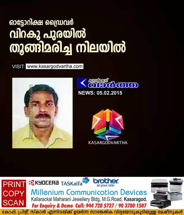 ഓട്ടോറിക്ഷ ഡ്രൈവര് വിറകു പുരയില് തൂങ്ങിമരിച്ച നിലയില്