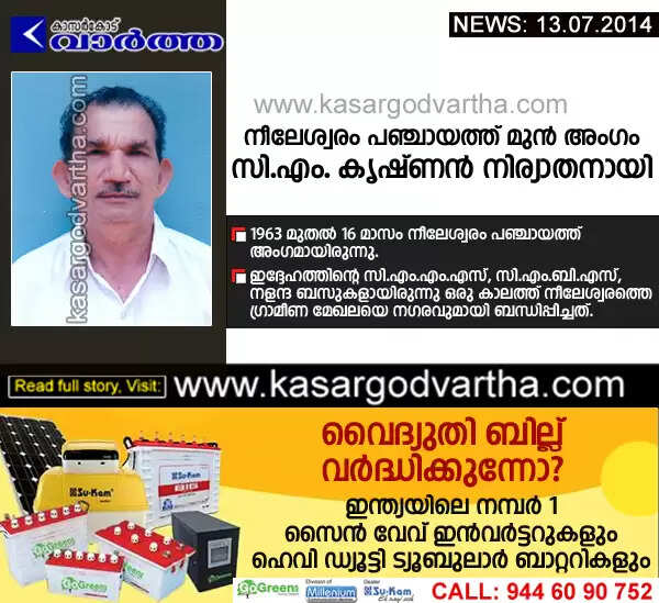 നീലേശ്വരം പഞ്ചായത്ത് മുന് അംഗം സി.എം. കൃഷ്ണന് നിര്യാതനായി