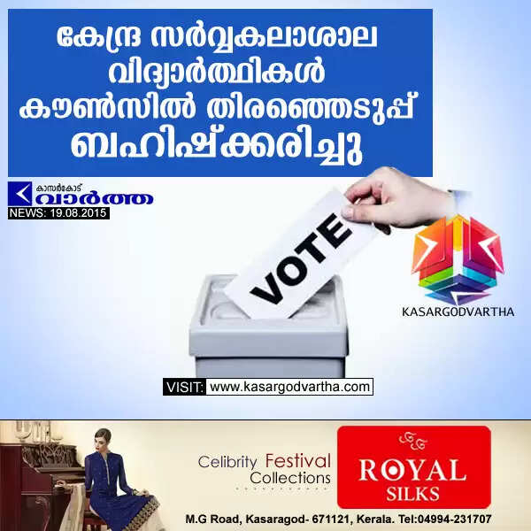 Keywords : Kanhangad, Central University, Students, Election, Kasaragod, CUK students boycott council election, Royal Silks.