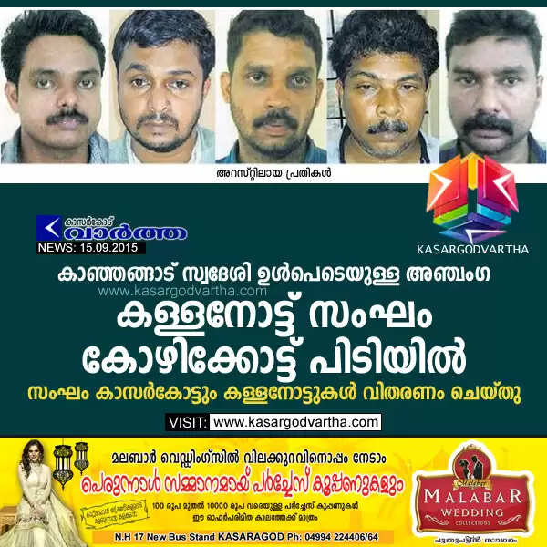 കാഞ്ഞങ്ങാട് സ്വദേശി ഉള്പെടെയുള്ള അഞ്ചംഗ കള്ളനോട്ട് സംഘം കോഴിക്കോട്ട് പിടിയില്; സംഘം കാസര്കോട്ടും കള്ളനോട്ടുകള് വിതരണം ചെയ്തു