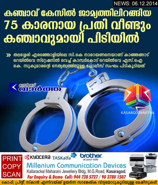 Keywords : Kanhangad, Ganja, Case, Accuse, Arrest, Railway station, Kasaragod, Kerala, Court, CK Narayanan.